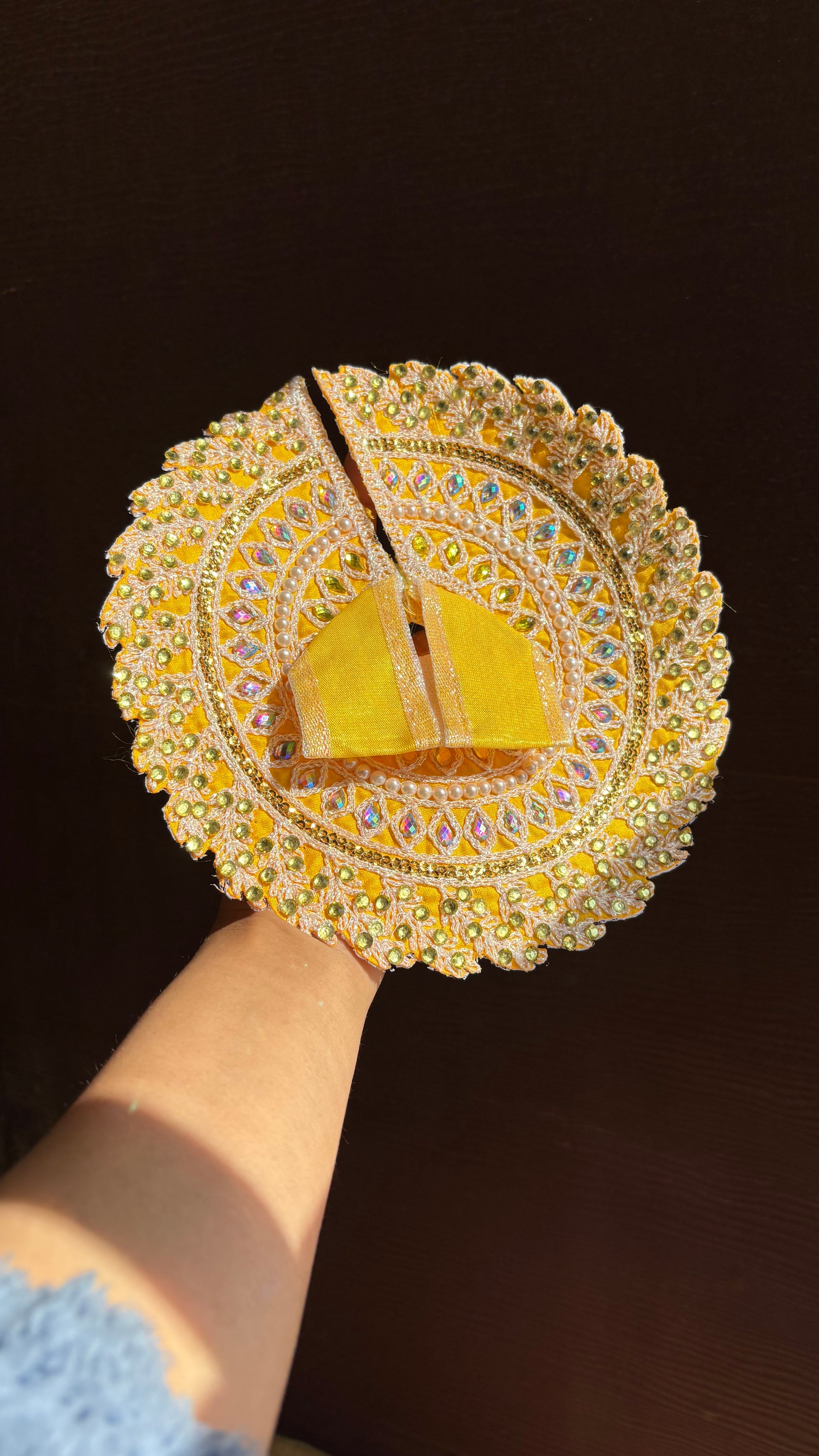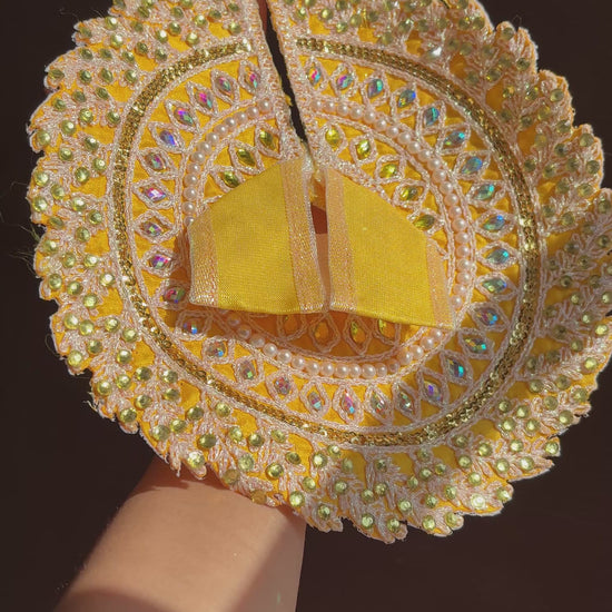 Yellow Designer Heavy Work Frock for Laddoo Gopal with Pearl and Stone Embroidery (Size 0-7)